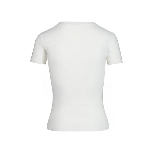 Off White Cotton Stretch Fitted Short Sleeve T-Shirt With Embroidered Logo